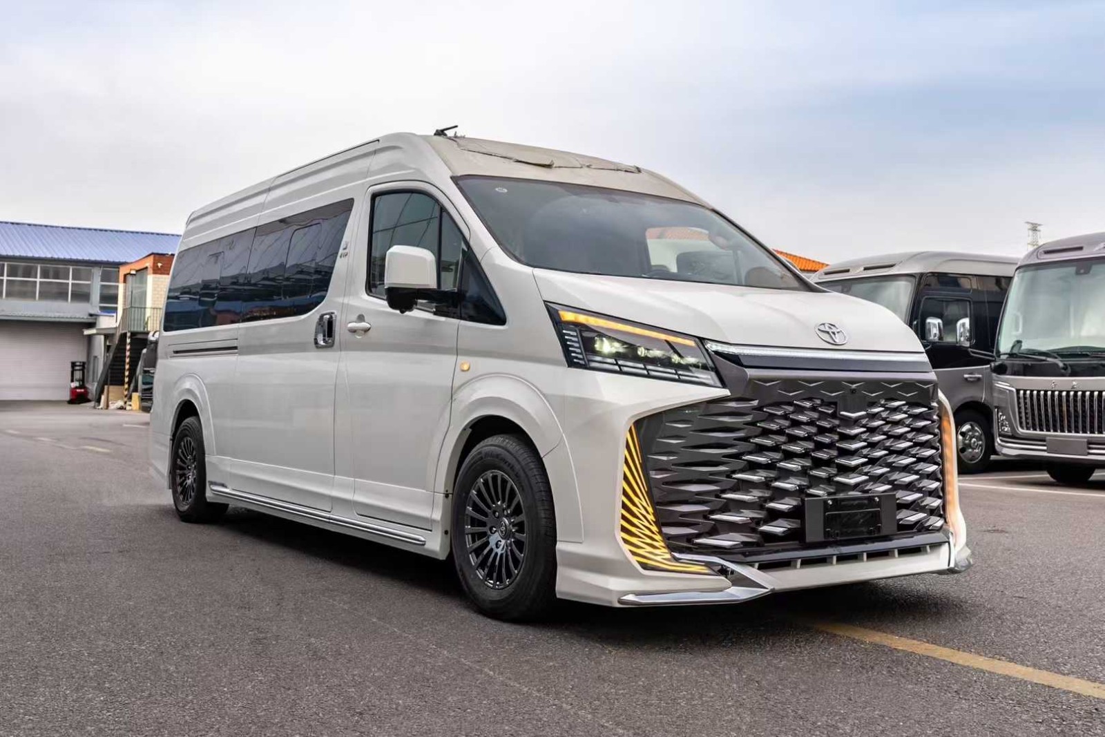 千万不要小看丰田海狮的6速变速箱!每档的切换十分平顺并且动力迅猛,高速超车觉对没压力。新丰田海狮为国六排放规范 车身分量: 2530 kg 轴距: 3860 mm 轮距(前/后): 1675/1670mm,长: 5915 mm,宽: 1950 mm,高: 2280 mm。丰田海狮HIACE车厢规划宽阔,中心走道将乘客座椅离隔,更便利乘坐及进出。一切座椅均为高档真皮并装备头枕,每个头枕及椅背均可调理至适合高。